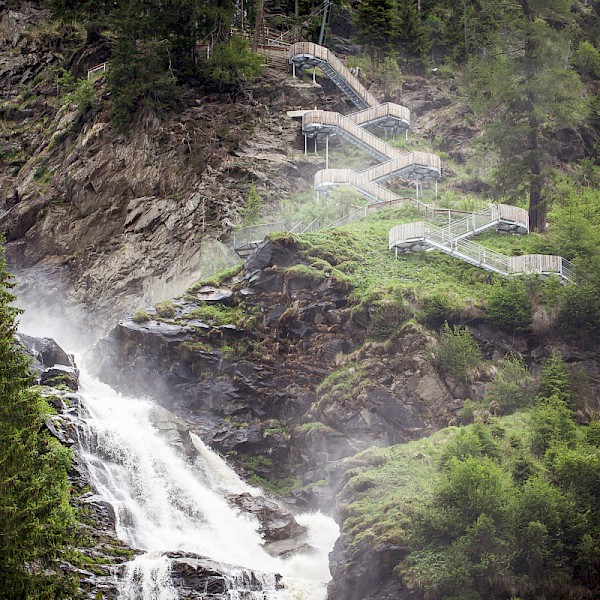 Ein spektakulärer Weg führt über 720 Stufen und eine 80m lange Hängebrücke zum Gipfel des höchsten Wasserfalls Österreichs.